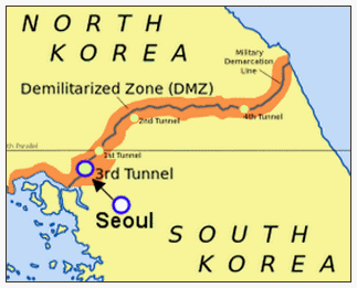 it takes only 30 minutes to DMZ(Demiliterized Zone), the 3rd tunnel and Panmujom (JSA, Joint Security Area) from Seoul by a car. while you visit the DMZ and the 3rd tunnel that presidents and ministers visits from many countries, you will understadn what is the real situation of south korea. South korea current situation is still like being at war.